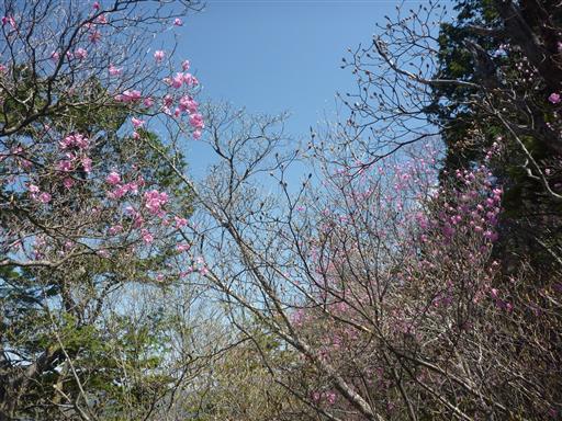 アカヤシオの花が咲いている。この辺りの山々はアカヤシオで有名だ。