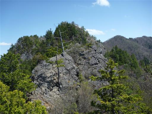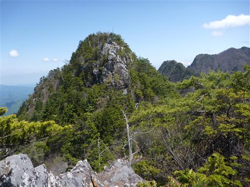 大ナゲシからは見事な岩峰に見えたこの山も、登ってみれば樹木に囲まれた小ピークだ。