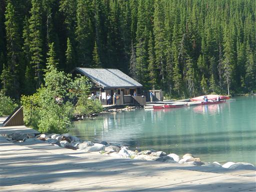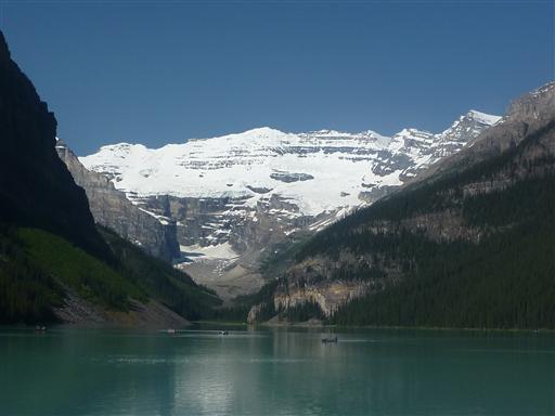 レイク・ルイーズに到着する。背後に見えるのはビクトリア山とビクトリア氷河。