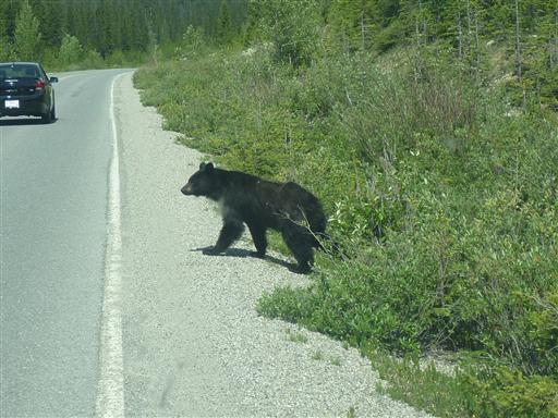 さらに車道を北上していくと、熊が道路に出てくる。2匹の熊がゆっくりと車道を横断していく。