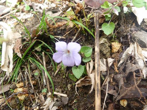道端にスミレの花が咲いている。気温も高く春を感じる。