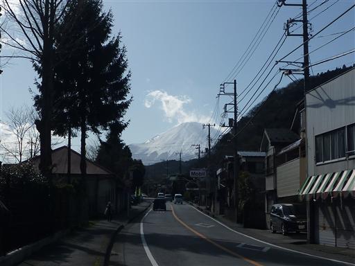 車道を歩いて駅を目指す。富士山の山頂部がようやく見えてきた。