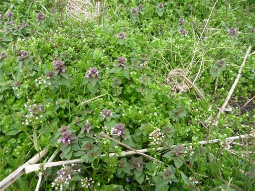ヒメオドリコソウやナズナなどが見られる。