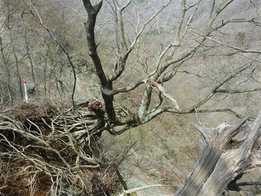 崖に生える木は根っこの先っぽで何とか体勢を保っている。