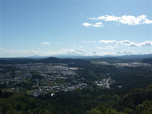 ここからは関東平野が一望できる。左の方に見えるのは大山で、遠く丹沢山塊まで見えている。