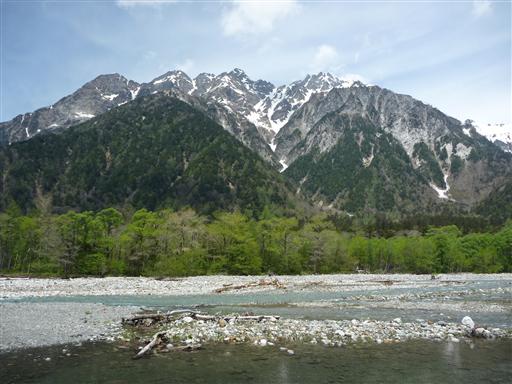 真中のピークが明神岳、その右は前穂高岳だ。