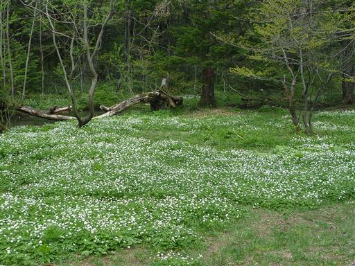 辺り一面ニリンソウの群落だ。地面が白く見えるほど多くの花が咲いている。