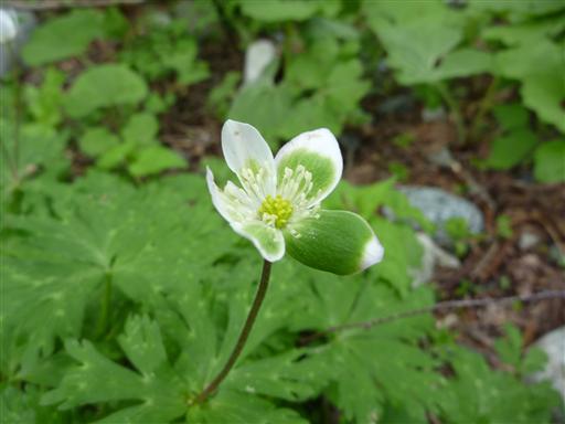 ミドリニリンソウ。よくよく見ると白いニリンソウの中に混ざっている。