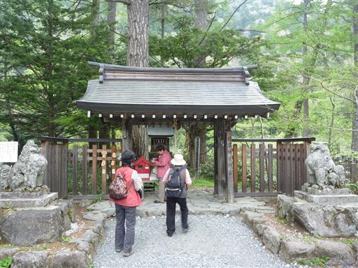 お昼近くになったので、徳沢で引き返し穂高神社奥宮に寄っていく。
