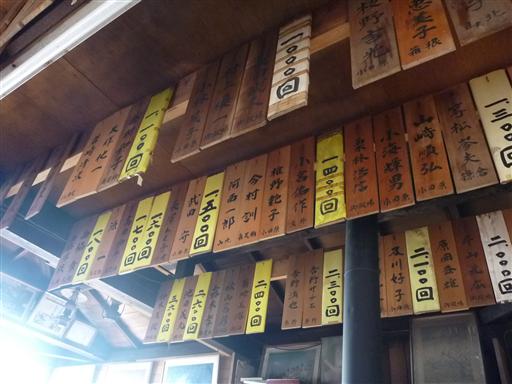中に入ると金時山に登った回数と人の名前が書かれた札が掛けられている。