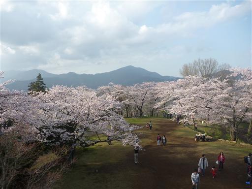 奥に見える弘法山まで桜の花が続いている。