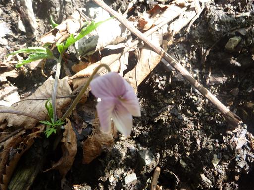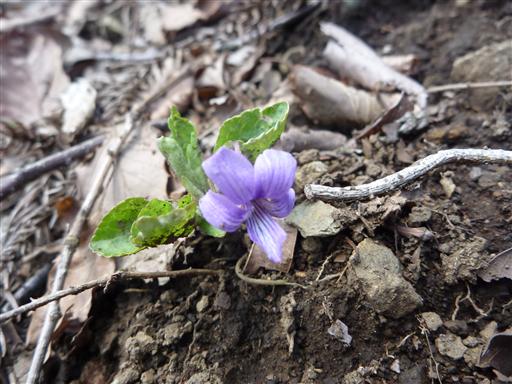 ここにもスミレの花が咲いている。先ほどのものとは違う種類のように見えるが…
