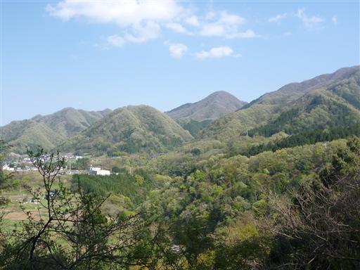 扇山はきれいな扇の形をしているのだが、後ろの山に溶け込んで輪郭が良く見えない。