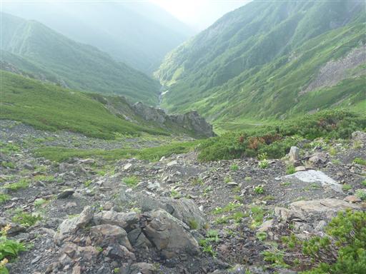 昨年ザックを落としたのはこの辺り。ここから沢沿いに駆け下ってザックを探しに行った。