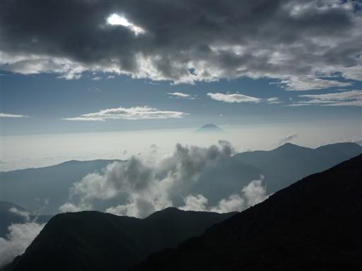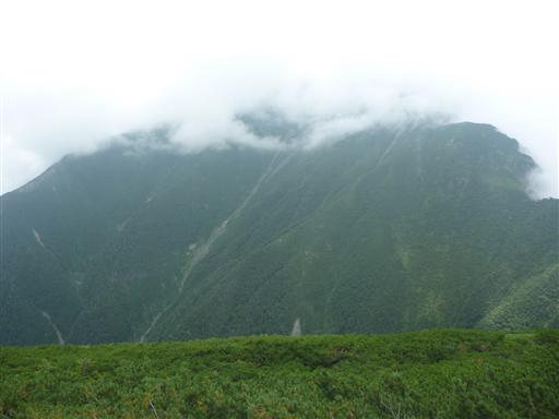 目の前にあるのは雲に隠れた巨大な聖岳。
