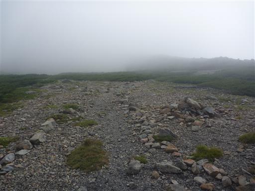 しばらく歩くと稜線は再び雲に覆われてしまう。