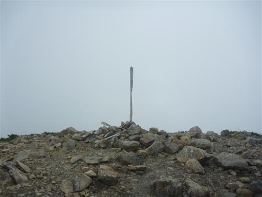 6:44 分岐点から一登りで赤石岳山頂到着。標高3120m。