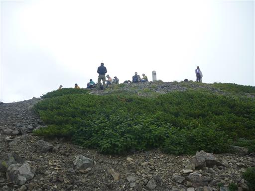 ここまで人の少ない稜線だったが、ここでは団体登山者がたむろしている。