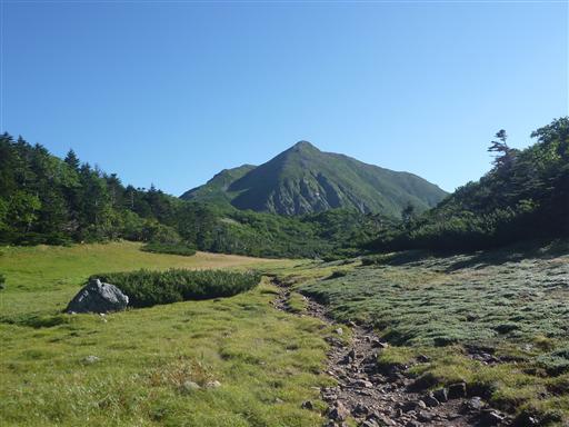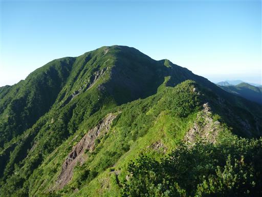 最終日だが今日もしばらくは登りがある。まずは目の前に見える上河内岳をめざす。