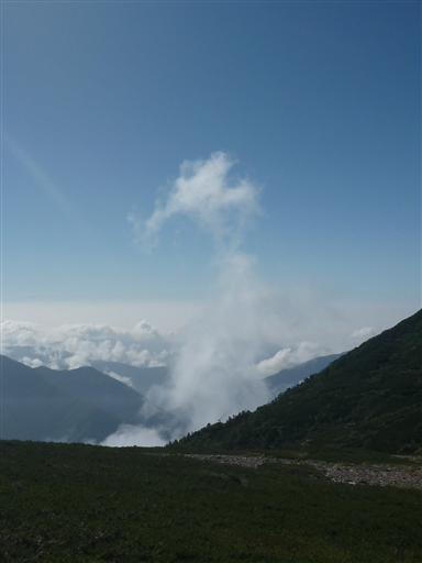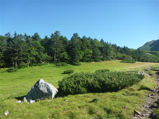上河内岳から南下していくと、アルプスの稜線とは思えないような風景が広がる。