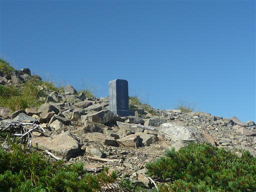 分岐点に戻って下山を開始する。遭難碑が一つ置かれている。
