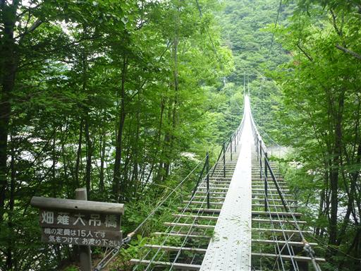 小さな吊橋。下山までにこのような吊橋をいくつも渡る。