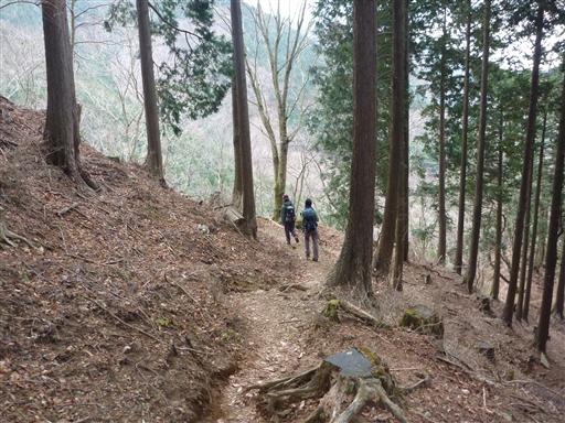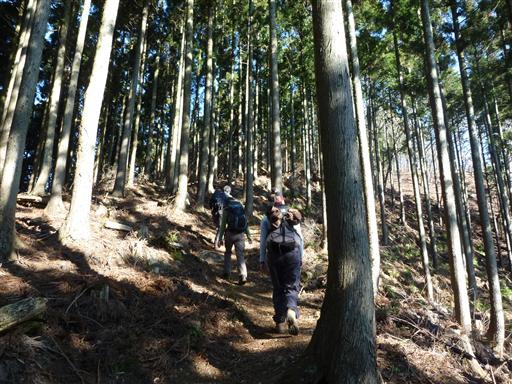 しばらく歩くと急登が始まる。この辺りは杉植林地帯が続く。
