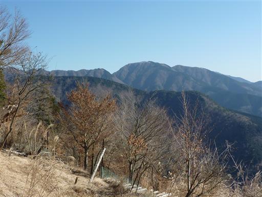 大きく見えるのは塔ノ岳、その左の小さい山が鍋割山だ。