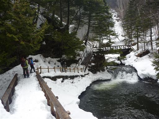 川沿いの遊歩道を歩いていく。全てが雪に埋まってしまうほどの積雪量はなく、