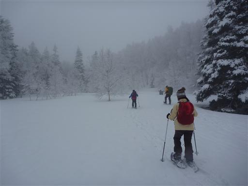 大きく開けた雪原に出てくる。雪は止んだがまだ展望は開けない。