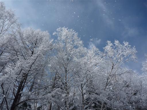 空を見上げると青空がちらほら見える。風に飛ばされて雪が舞っている。