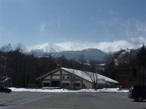 宿の近くまで戻ってくる。青空が広がり乗鞍岳の山頂部分が見え隠れしている。