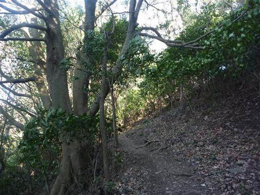 全体的に照葉樹林に囲まれている縦走路だが、