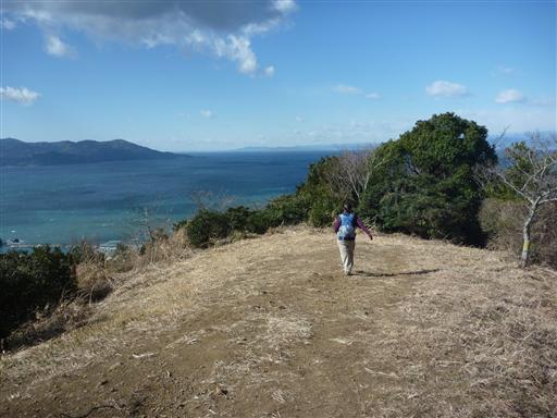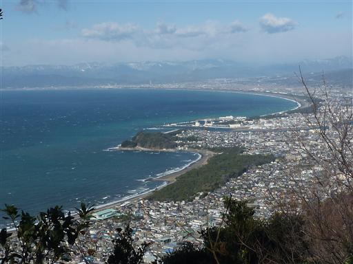 縦走路からは駿河湾の青い海がよく見渡せる。緩やかに弧を描いた海岸線は本当に美しい。