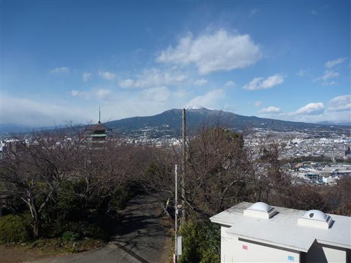 東の方角には箱根の山々が見える。箱根は山頂部が白く染まっている。