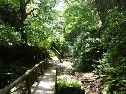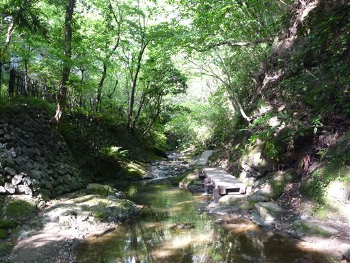 下山地点からは車道に沿って整備された沢沿いの遊歩道を歩く。