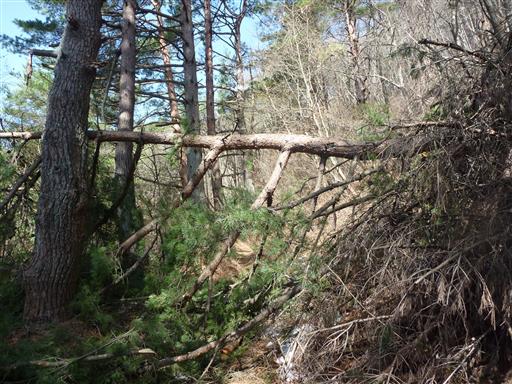 下山路でも檜の幼木が多数倒れている。