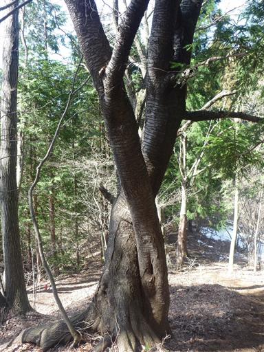 2本の木が絡み合っている。