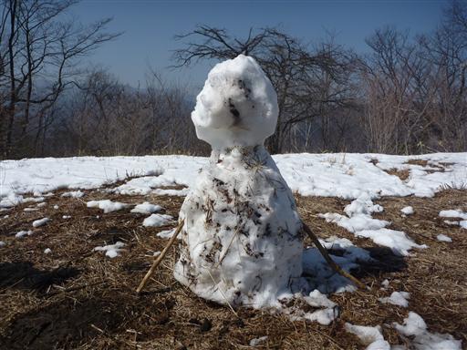 山頂の一角に雪だるまが作られている。