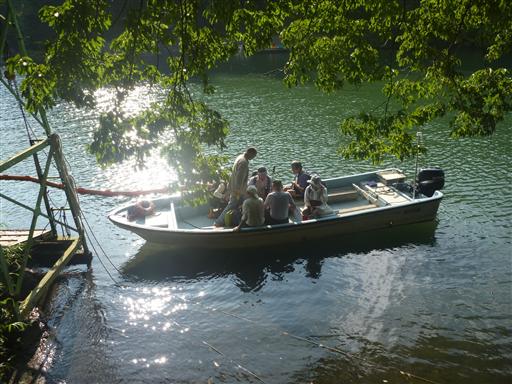 小船に乗船。人数が多いので、大きな船に乗り換える。