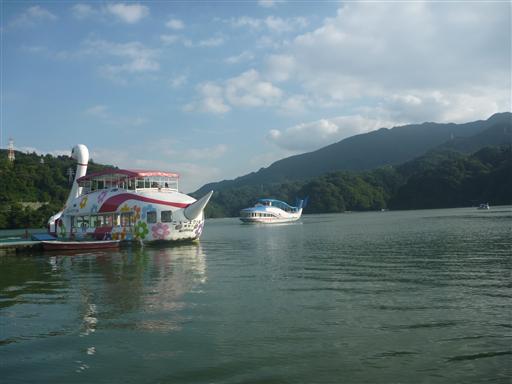 相模湖をゆったりと渡っていく。相模湖は桂川にあるダム湖だが、