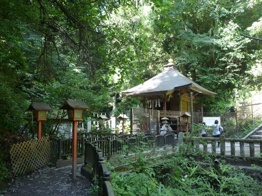 琵琶滝に到着。建物の裏のほうでチョロチョロと水が流れている。