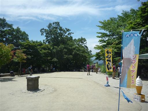 山頂直下の広場。こちらの方が山頂より涼しくて、人の数も少なく快適だ。