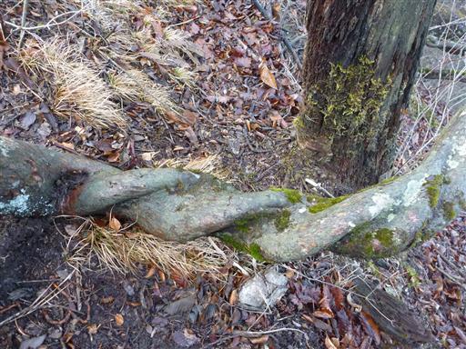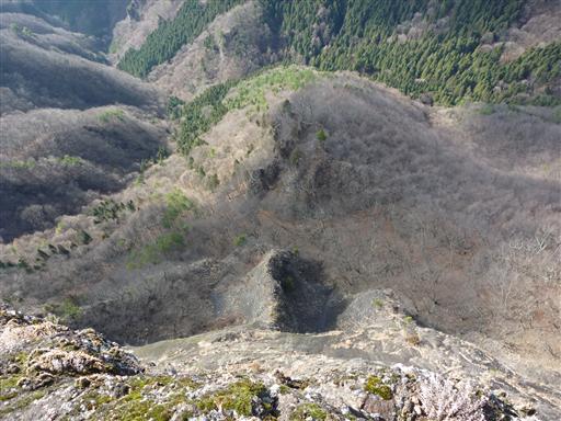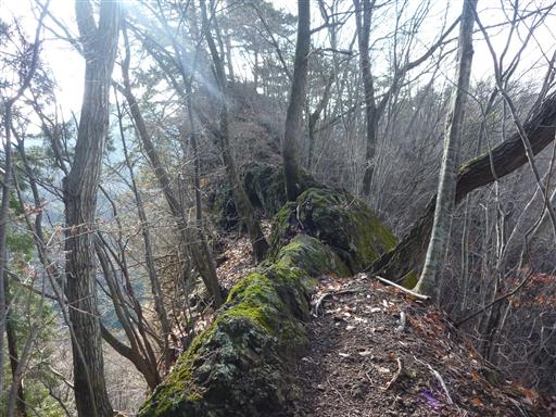 こんな細い稜線上に石垣?と思ったら、自然にできた岩だった。