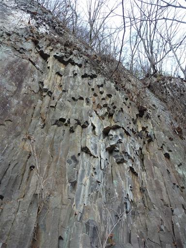 頭上を見上げると、ここでも見事な柱状節理が見られる。