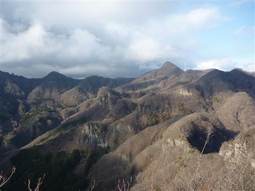 左手に視界が開ける。毛無岩と歩いてきた稜線が見渡せる。