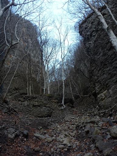 そこそこ急斜面で、不安定な石が多く、石を落とさずに歩くのは辛い。