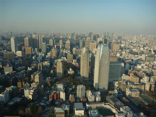 東京の街並み。10階建て程度のビルは非常に小さく見える。