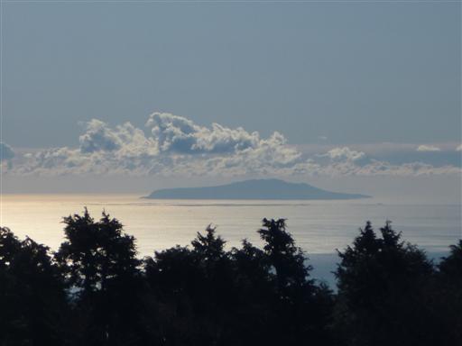 海の上に大島が船のように浮かんでいる。