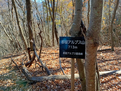 都留アルプス山に到着する。標高713m。本日の最高峰。